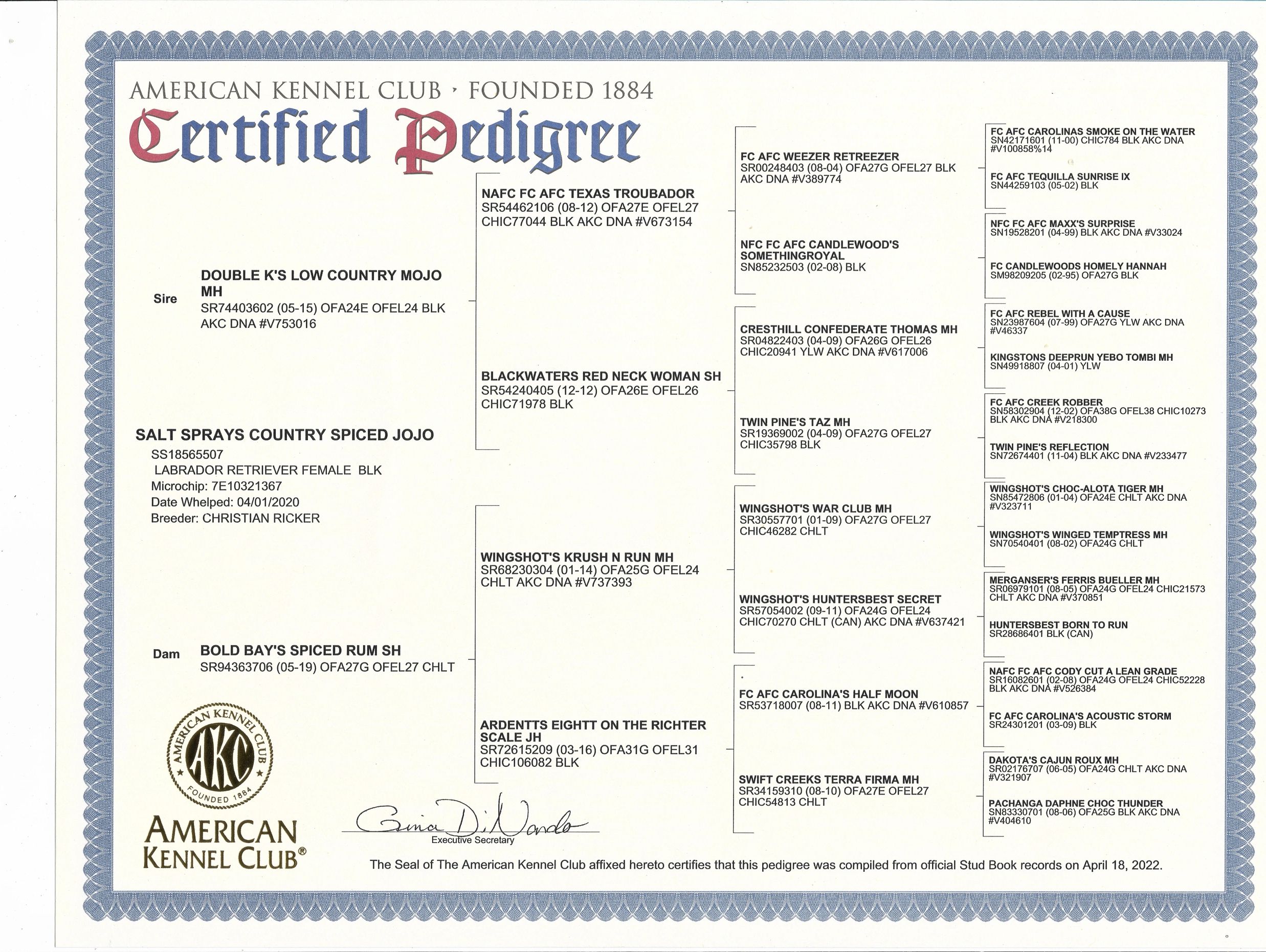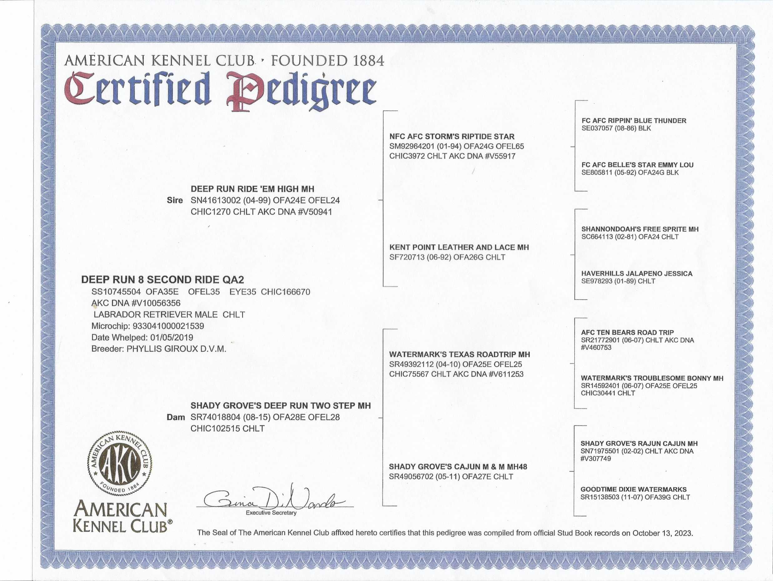 Duck U Kennels guarantees your puppy will have a hip rating that will satisfy the requirements to pass the AKC standards as well as OFA guidelines.